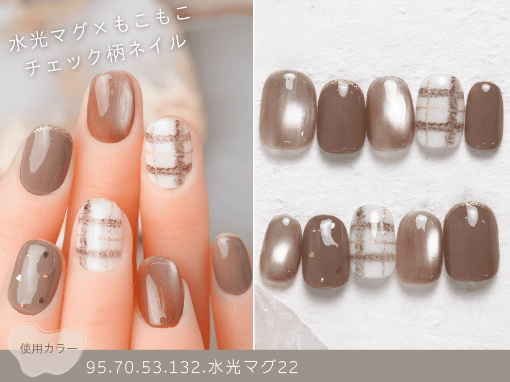 (107)水光マグ×もこもこチェック柄ネイル